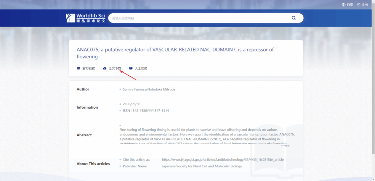 (1)如下图是该数据库首页,首页可以直接进行文章检索,也可以打开期刊列表页进行期刊检索。