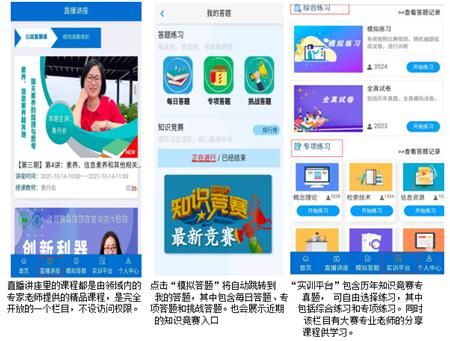 【首页】【直播讲座】【模拟答题】【实训平台】【个人中心】,以下是对应功能应用的图示操作流程。