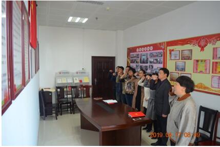 “我志愿加入中国共产党,拥护党的纲领…”2019年4月17日,图书馆403的党员活动室里传来庄严的宣誓声,在夏永全书记、刘辛田馆长的带领下,全体党员重温入党誓词,面对鲜红的党旗大家心潮澎湃,铮铮誓言振奋人心。随后,大家集体学习了党章,并就“不忘初心,牢记使命”的主题开展了交流讨论,所有党员纷纷踊跃发言,表达了自己坚定信念不动摇,永远跟党走的决心。