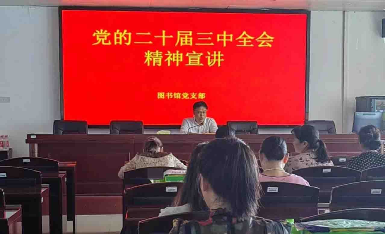 9月20日下午,图书馆党支部在图书馆415会议室开展党的二十届三中全会精神宣讲会,图书馆党支部书记、馆长彭辉主持会议并作宣讲报告,全体党员参加。