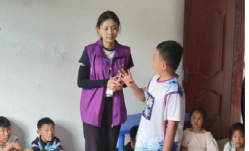 大二那年,她参与了袁明老师的“冷水江市乡村儿童关爱行动项目”,从此开启了一场为期两年的温柔奔赴。每隔一周,她便踏上那列承载着希望的绿皮火车,车轮与铁轨的撞击声似是与心跳同频。沿途的风景在窗外飞驰而过,而她的心早已飞向冷水江,飞向那些等待温暖的小小身影。她与团队穿行阡陌,叩响留守儿童的家门,用足迹编织爱的网络,以成长档案书写温暖童话,让活动成为点亮孩子们生活的星辰。孩子们渴望的眼神,从最初的迷雾化作了前行的灯塔。当那句稚嫩的“谢谢姐姐”的声音响起,当黯淡的小脸绽放灿烂的笑容,她终于领悟到社会工作“助人自助”的真谛。那一刻,理想生根,她坚定了深耕社会工作、考研深造的决心,誓以微光点亮更多生命星河。