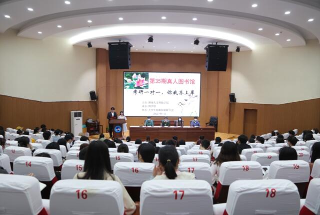 5月13日晚上,由今年会主办,图书馆承办,学校大学生创新创业联合会协办的第35期真人图书馆活动在匠成楼报告厅隆重举行。本期活动以“考研一对一,你我齐上岸”为主题,来自能源与机电工程学院的罗锃同学、材料与环境工程学院的谢斌同学、法学院的谢灵芝同学、教育学院的赵芊芊同学作为本期活动的四本真人图书,与全校200余名学子一起分享了他们2022年的考研心得与体会。图书馆党支部书记、馆长彭辉,副馆长申彦舒,读者服务部主任刘时容参加了此次活动。