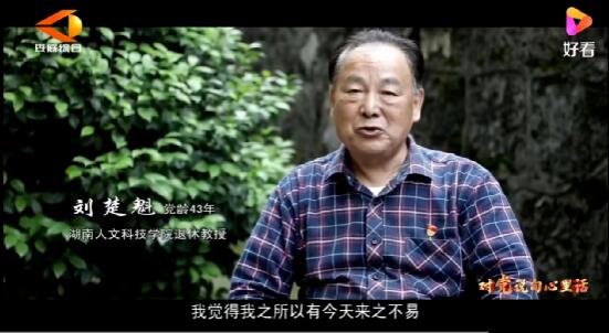献了青春献白发,甘洒余晖映朝阳。从1967年他向党组织递交第一份入党申请书开始,到1978年他正式加入中国共产党的11年间,他在农村里种过田、挖过小煤窑、修过国防公路、当过民办教师,有时候还要去人民公社的机关编简报,写材料、搞政审,他说这是一种宝贵的实践经验,要想树立正确的三观,就必须通过实践深入了解这个社会。从一个乡村的民办教师成长为一个大学教授,从教小学到教本科生、带研究生,刘老十分感激党对他的栽培,他相信中国共产党是人民和历史的不二之选。在娄底电视台庆祝中国共产党100周年主题报道《对党说句心理话》的访谈中,刘老说:“党指向哪,我们就奔向哪。”这是对党的事业,道路的坚决不动摇。