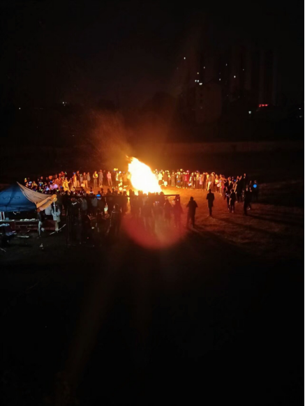 在一切都准备好之后,晚会的现场迎来了最令人激动的时候。当主持人宣布晚会开始的时候。来到现场的同学们都紧紧地围成一个圈。全场一起倒数十秒,当点燃篝火的时候,全场的欢呼声让晚会的氛围达到了高潮。暖暖的火光映在每一个人的脸上,青春的感觉围绕着现场。音乐响起的时候,同学们踏着欢乐的步子,一起跳起了兔子舞,简单有趣的舞蹈被同学们跳的津津有味,所有人都被现场的氛围感染着,一起欢声笑语。不管是熟人,还是陌生人,在这个时候都是一起玩耍的小伙伴,没有其他的烦恼,全身心的投入在游戏与嬉戏中,这个是他们的青春,冰与火的青春。突如其来的“表白大会”,荷尔蒙的气息围绕着,每个人望着眼前发生的事情,或期待,或祝福,或思考者什么。在大学,哪怕没有结果,也谈一场恋爱吧,这是人生必经的风景,停下来看看,会比默默赶路的人收获很多。记住了此刻的美好,才有走下去的坚持。就着大火,同学们不知在与身边的人说着什么,神采飞扬的样子,为之动容。到了最后的“啤酒比赛”,所有人的目光都锁定在赛着身上,欢呼助威,好不热闹,对于每位参与者都有奖品,但名次在前的更为丰厚哦。随着大火不断燃烧,慢慢熄灭,晚会到了尾声,同学们陆续的散去,但今晚的开心却依然萦绕心头。