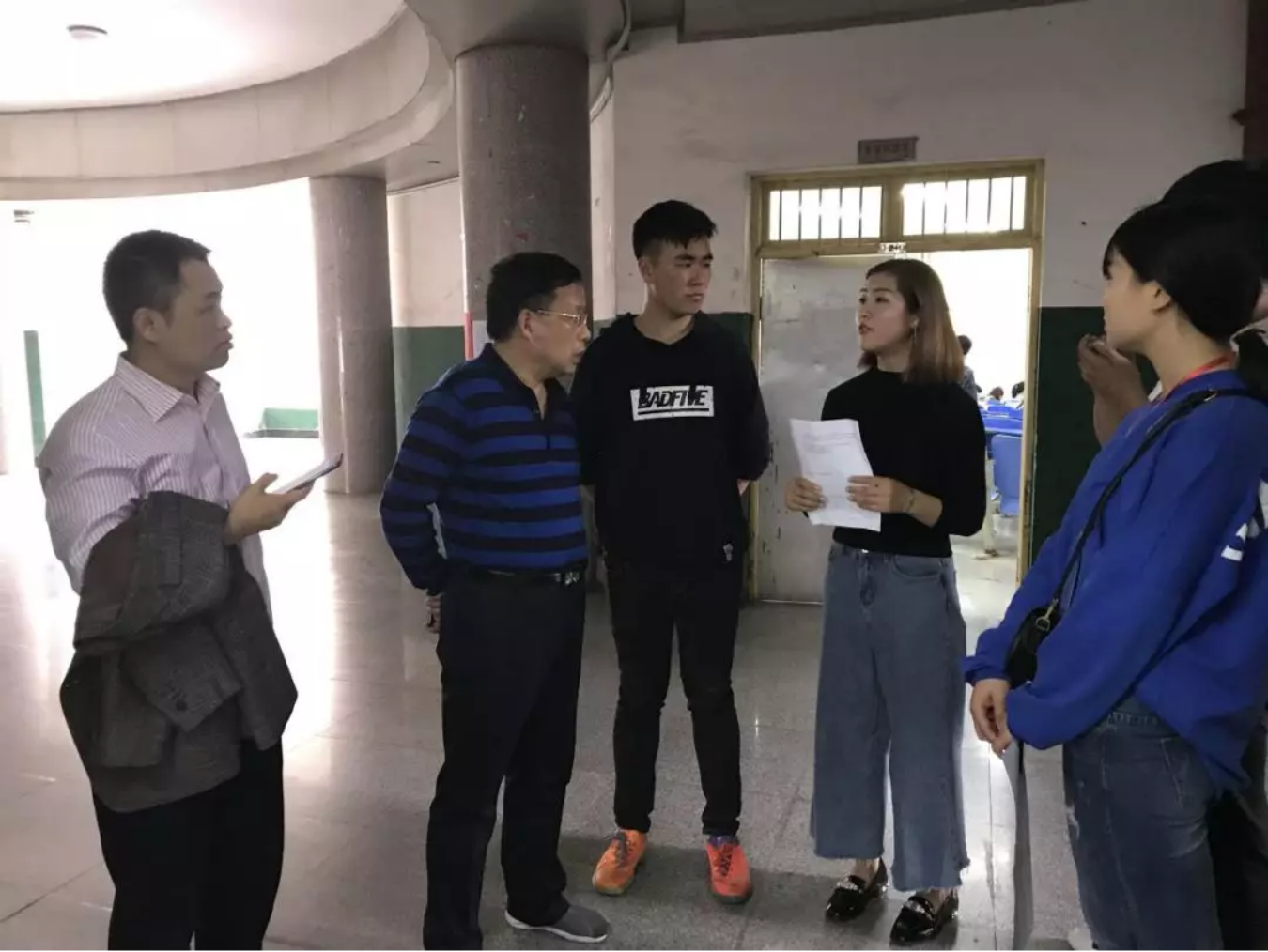 (图为学工部部长余为(左二)视察考试现场并做工作指导)
