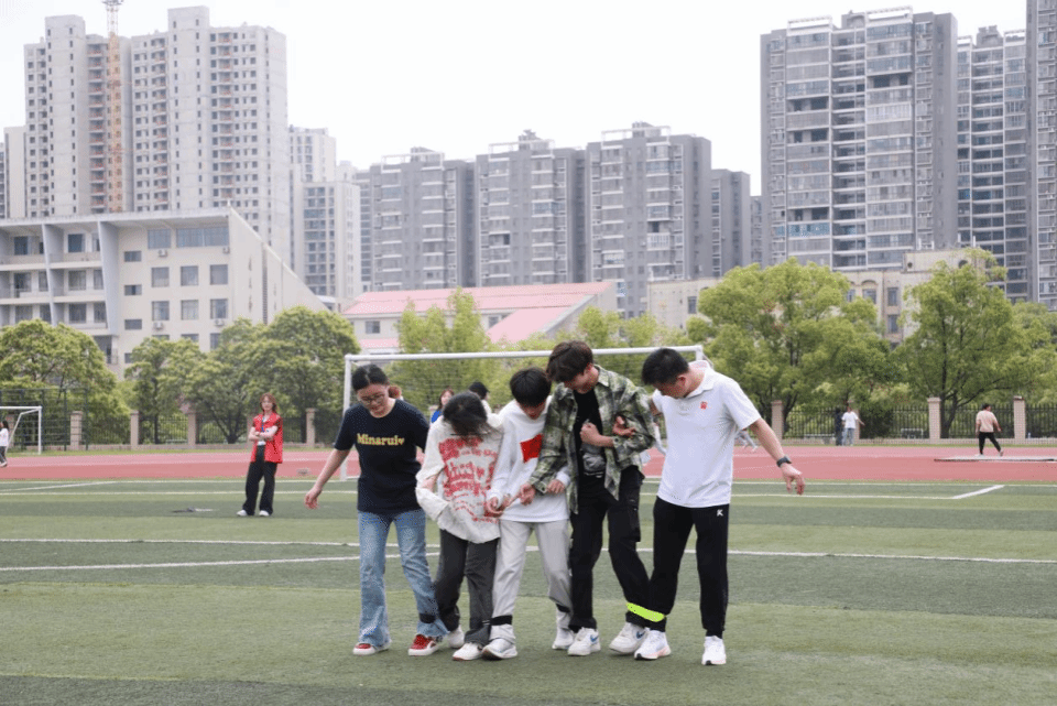 4月16日下午,由校团委主办的以“师生齐心,其利断金”为主题的“师生,向前冲!”大型趣味竞技活动在田径场、惠丰球场等四大场地火热开展。活动吸引了全校师生踊跃参与,共17支队伍同场竞技。 开幕式由李林奇老师致辞,她表示,师生同台竞技不仅是一次体能与默契的考验,更是情感交流的桥梁。希望通过活动,让师生在协作中增进理解,在拼搏中共享快乐。