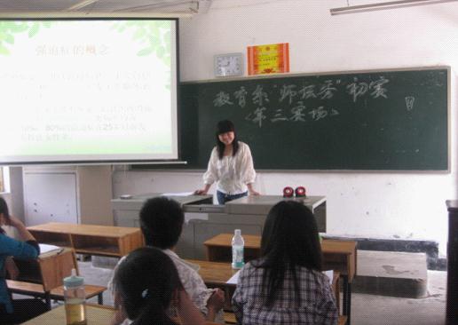 2012年4月26日,教育科学系团总支第四届大学生艺术节之特色活动——第六届“师坛秀”初赛,中午12点30分在甘澍楼吹响集结的号角。此次初赛邀请到的评委有教育科学系团总支和学生会09级的部分学生干部。