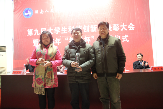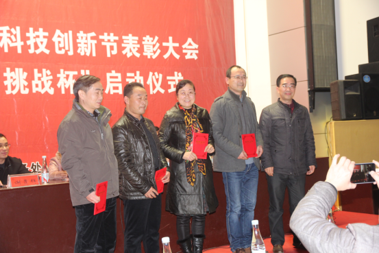 大会伊始,团委书记谢柳对今年的大学生科技创新活动进行了全面的总结。副校长蒋建初宣读了表彰决定。学校领导为今年在校级、省级挑战杯竞赛中获奖师生和优秀组织单位颁奖。