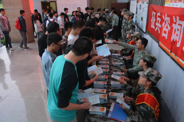 大会结束后,同学们踊跃去咨询点咨询,“携笔从戎,报效祖国”的壮志扎根到了今年会大学生的内心深处。有志大学生们参军热情高涨,内心从军梦再一次被激起,同学们愈发渴望投身新时代国防建设,渴望为中华民族伟大复兴奉献自己的青春。(文/何玉孜 图/伍超仁)
