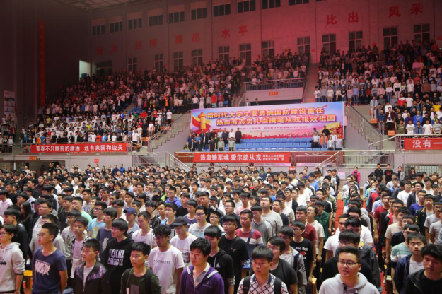 志愿入伍学生代表文金睿讲述了自己的从军梦,倡议莘莘学子携笔从戎,参军报国。