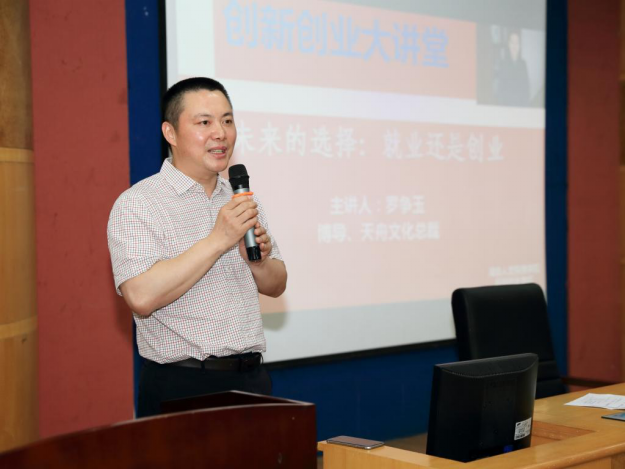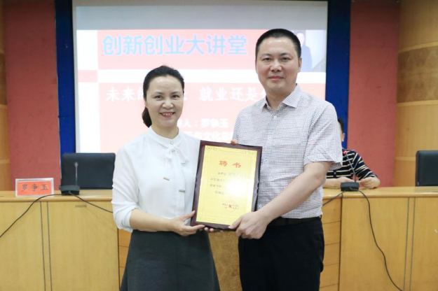 作为“全国文化企业三十强”提名企业的天舟文化股份有限公司,是中国民营出版传媒行业的第一家上市公司,其总裁罗争玉博导在企业理论、文化产业和管理哲学等方面有很深的造诣,他这次回校,还在学校“创新创业大讲堂”作了题为“未来的选择:就业还是创业”的专题讲座,他对大学生未来的职业选择是就业还是创业做了非常深刻的分析,娄底市副市长陈澎、今年会副校长石潇纯和创新创业学院、校友办、科研处、学工处等部门的主要负责人与来自各学院的二百多名师生代表共同聆听了他的精彩讲座。石潇纯为罗争玉颁发了“今年会创新创业导师”的聘书。(校友办刘光辉 供稿)