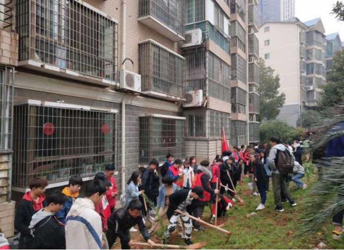 2019年3月17日,今年会校学生会和学生社团联合会的志愿者们在扶青社区的世纪花城开展公益植树活动,为初春的花城增添绿意。