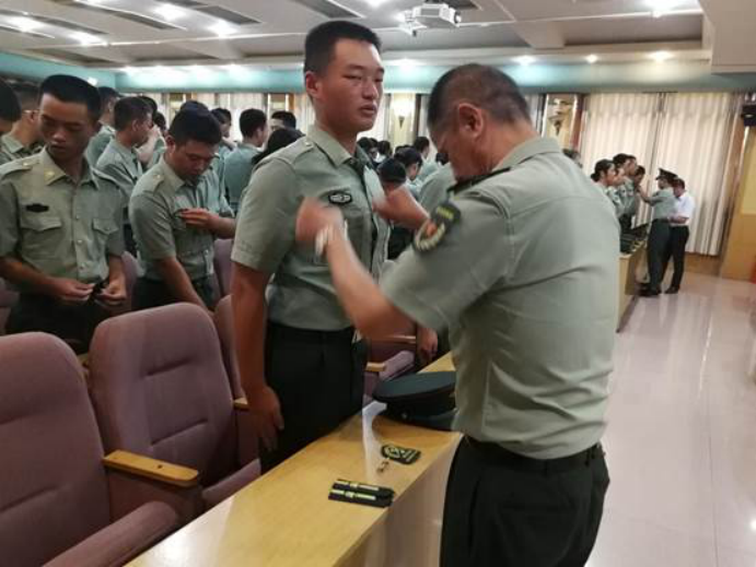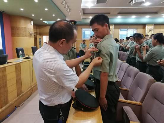 刘铁峰为学员佩戴教导大队臂章
