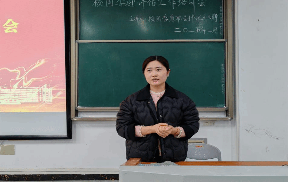 3月14日晚,校团委在致远楼102教室组织召开了迎评估工作培训会。校团委兼职副书记王文静主持,近200名学生干部参加了培训会。
