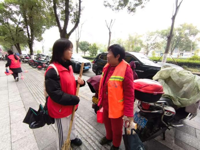 本次活动旨在协助环卫工人进行街道清扫与日常环境维护,用实践行动弘扬雷锋精神。在分配好任务后,志愿者们热火朝天地投入了工作中。清扫过程中,大家认真细致地捡拾起烟头,纸屑等杂物,不放过任何一个死角。清扫完成后,志愿者们为环卫工人叔叔阿姨献上围巾、姜茶和精心准备的礼品,对他们的辛勤付出表达了由衷的感谢。天气虽冷,志愿者们的暖心举动温暖了大家的心间。