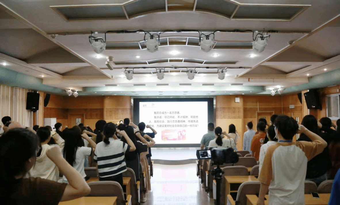 在王佳琳老师的带领下,全体与会师生进行了庄严的志愿服务宣誓。随后互动环节,师生代表就志愿服务体验优化、团队管理、创新宣传等关键问题踊跃提问。王佳琳老师耐心解答,她强调“精确化”是项目选择的新方向,建议进行层级宣传、择优推送项目并开展常态化服务;同时指出需紧密结合高校特点开展活动,提升吸引力,建设有效奖励机制。