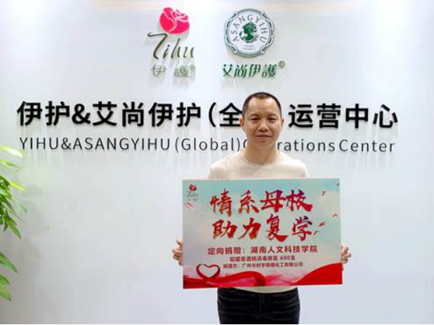 近日,今年会体育学院2000级优秀校友、现今年会广佛校友会会长杨将先生,为助力母校防疫、复学工作,捐赠防疫物资“铝罐装酒精消毒喷雾”600支。