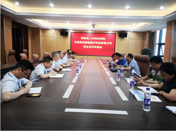 5月14日,校地校企合作处处长黎建辉率本部门及精细陶瓷与粉体材料省重点实验室、材料与环境工程学院、农业与生物技术学院、商学院等部门负责人及相关博士一行9人前往湖南省健缘医疗科技有限公司考察。