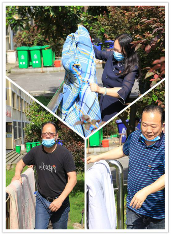 (三联系校领导和机关处室负责人为毕业生晾晒被褥)