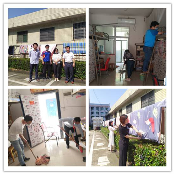 随着学校2020年春季学期学生返校通知的发布,5月26日毕业生即将陆续返校开学。为给毕业生提供整洁、干净、卫生的学习、生活环境,5月19日上午9点,校党委委员、宣传部长谢柳,校地校企合作处、创新创业学院和能源与机电工程学院全体领导干部、教工党员、辅导员、班主任、任课教师深入毕业生寝室,开展卫生清扫和晾晒被褥的义务劳动,以实际行动为学生服务,践行服务育人的理念。