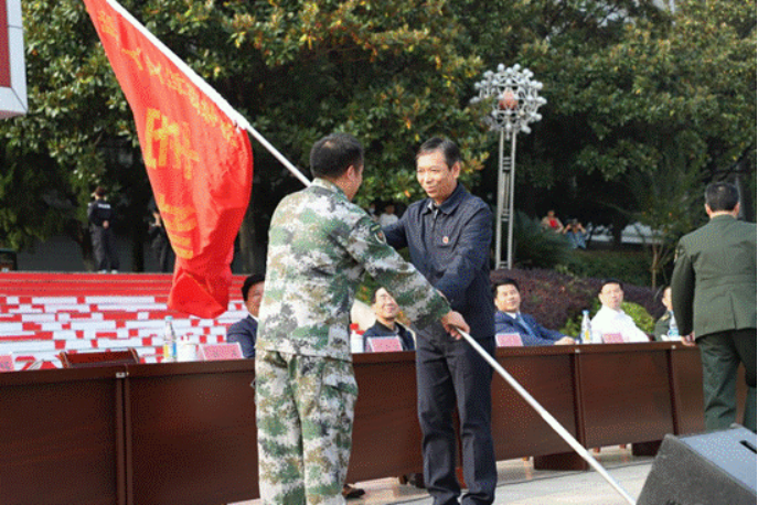 最后,党委书记郭军为军训团授旗,学校武装部部长、军训团团长郑秀星接旗。开学典礼结束后,2020级全体新生随即展开军训。