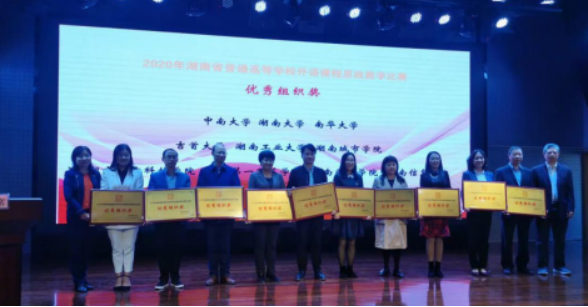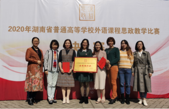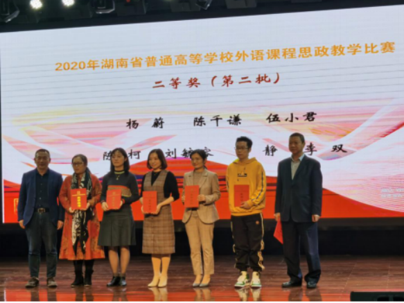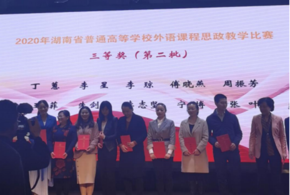 10月23日,湖南省普通高等学校外语课程思政比赛决赛在株洲工业大学外国语学院隆重举行,今年会外国语学院两支教学团队从101个教学团队(个人)中脱颖而出,与湖南大学、中南大学等25所省内高校同台竞技,经过激烈角逐,杨蔚团队(杨蔚、肖婷、韦萍、周祥艳)荣获英语专业组二等奖,王菲团队(王菲、刘欣磊、禹逸群、吴新红、邓梦林)荣获大学英语组三等奖,今年会喜获优秀组织奖。外国语学院将继续前行,不断探索,守好课程思政的一段渠、种好英语教学的试验田。