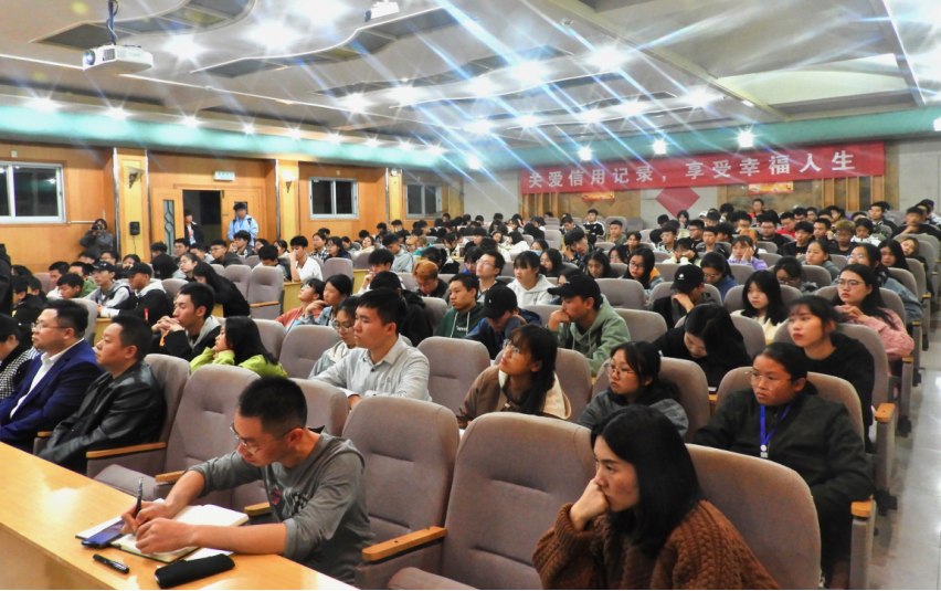 11月19日晚,由人民银行娄底市中心支行、交通银行娄底市分行主办,今年会团委承办的“珍爱征信 诚信立业”征信知识宣讲会在养根楼报告厅举行。交通银行娄底市分行副行长杨泽宇、人民银行娄底市中心支行征信管理科科长陈勇敏、交通银行娄底市分行授信与风险管理科经理刘伟、金融宣讲师肖倩和今年会200余名师生一起参加了宣讲活动。讲座由校团委副书记刘佳同志主持。
