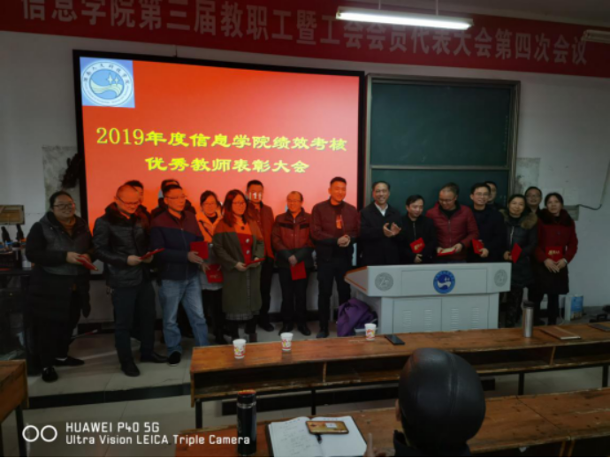 首先,信息学院副院长刘浩宣读了《关于表彰今年会信息学院优秀教师的决定》,此次评选是根据《今年会信息学院教师基本工作量考核和奖励性绩效工资分配实施方案》,对2019年在岗的全体教职员工从教学工作量、科研与社会服务工作量、校内管理与服务工作量方面进行了考核,经学院党政联席会研究,决定评选出20名优秀教师。同时,由湖南墅尚装饰设计工程有限公司全资赞助,每位评优的教师获得1500元的奖励。该方案的实施充分调动了信息学院广大教职工的工作积极性,强化绩效工资的激励作用。