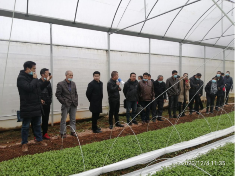 顶着凛冽的寒风,走在泥泞的山间小路上,但是学员们的热情丝毫未减,来到永丰镇洪殿红柚生态农庄的经果林基地。农生院(农科所)植保室主任朱赞江针对目前红柚表象进行了答疑解惑,黄叶现象要及时补充镁、锌、铁等微量元素,树叶“画弧”现象是受“潜叶蛾”侵害的典型症状,并对相关病虫害的防治进行了对症下药。接着,培训班又马不停蹄来到今年会校企合作企业“鑫盛种养农民专业合作社”,在公司负责人王义定的带领下,参观了公司的育苗大棚和蔬菜大棚。王义定对公司和主打农产品进行了简要介绍后。朱赞江就蔬菜病虫害指导学员们进行了辨认,解说了防治方法。周发明对老师们精彩纷呈的现场教学和学员们的勤学好问表示满意,并与农民学员们进行了现场交流;他要求农生院(农科所)今后针对类似培训要多上这种接地气的课,让农民学员从实践中更快地掌握知识、提升技能,办农民满意的培训。向国红要求培训工作组的老师们认真履职,做好后勤保障工作,确保安全出行。