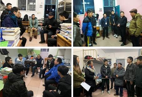 领导老师们在宿舍里,跟同学们进行了一系列交流,询问了同学们近期的学习情况,督促同学们对即将到来的期末考试认真复习,提醒同学们在回家途中以及放假期间注意疫情防控和生命财产安全。领导们看到朝气蓬勃的同学们想起了自己学生时代,并与同学们讲起了自己的寝室生活,让同学们感到格外的亲切,原来的拘束一下子就减去了不少,同学们也开始跟领导分享自己在这生活的感受以及自己大学四年的规划和想法,老师们都给予了指导性的意见。同学们纷纷表示,感谢校领导和老师们关心关怀,接下去将会更加坚定理想信念、明确学习目标,在今后的学习生活中以更严格的标准要求自我,不负青春、不负期望。