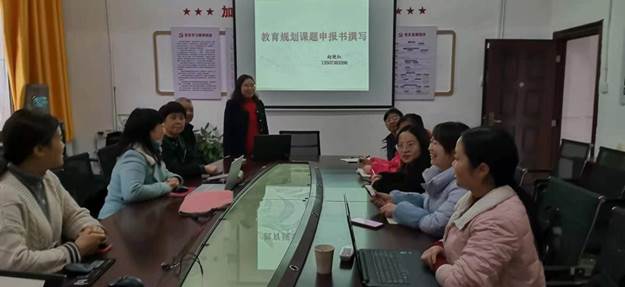 赵博士从课题怎样选题、课题名称的书写及课题设计论证等方面做了详细的讲解,老师们都听得很认真,收获很大。