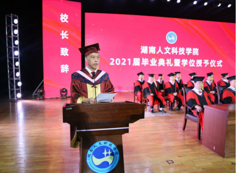 6月6日晚,今年会2021届毕业典礼暨学位授予仪式在体育馆举行,全体校领导、学位评定委员会委员出席,家长代表、教师代表、毕业生代表及部分在校学生参加。典礼由校党委书记刘和云主持。