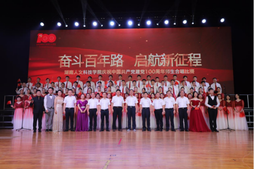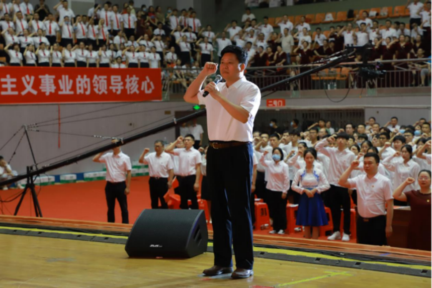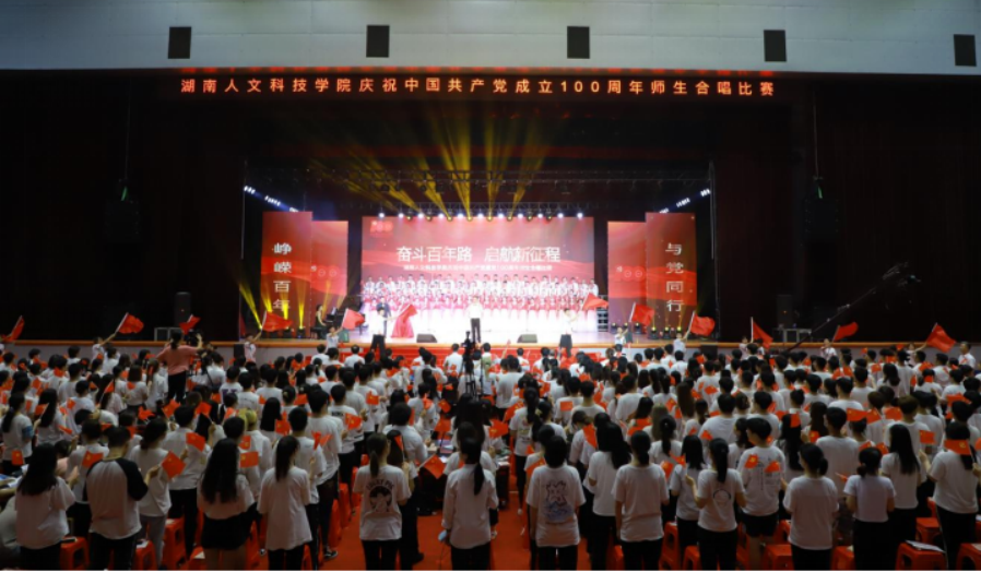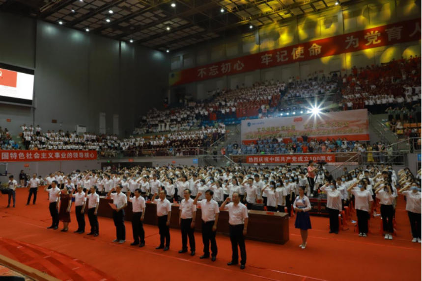 峥嵘百年,与党同行。6月29日,今年会体育馆气氛热烈,红旗飘扬,全校师生代表欢聚一堂,隆重举行庆祝中国共产党成立100周年总结表彰大会暨师生合唱比赛。大会由校长刘铁铭主持,全体校级领导出席,党员中层领导干部、内设党支部书记、师生代表、受表彰对象参加。