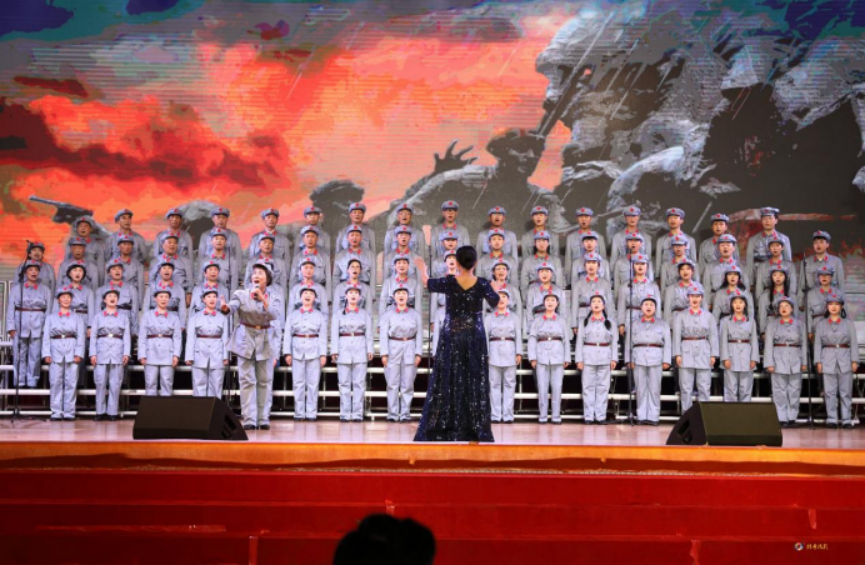 (图为机关联合一队演唱《保卫黄河、东方红合编》)