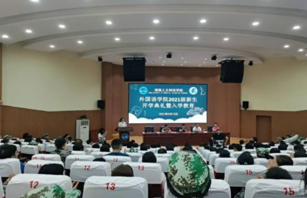 2021年9月13日上午,外国语学院在匠成楼报告厅举行了21级新生开学典礼暨入学教育。全体院领导、办公室、教务办、辅导员、教研室主任、新生班主任以及21级全体新生参加了此次活动,会议由党总支副书记罗嗣安主持。