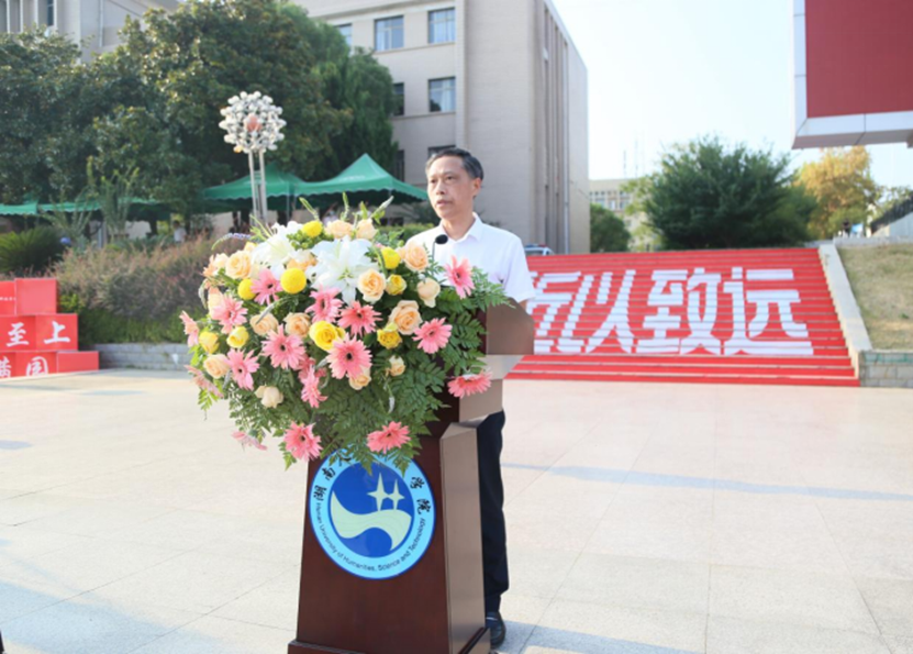 校长刘铁铭代表全校师生员工向新同学表示热烈欢迎和祝贺。他深情回顾了学校的发展历程,阐述了学校的发展目标和人才培养方向。他说:“同学们是祖国未来,是民族复兴的不竭动力。要进一步明确学习目的,把学习作为一种生活方式、一种精神追求。要积极主动向老师学、向同学学、在课堂上学、从书本中学,在运动场上学,到实践中学。要认真钻研专业知识,提升特长技能,勤思考,多醒悟,善总结,不断充实自己、提升自己、完善自己。”他对同学们提出四点希望:一是希望同学们厚植家国情怀;二是希望同学们练就过硬本领;三是希望同学们锤炼品德修为;四是希望同学们锻炼强健体魄。