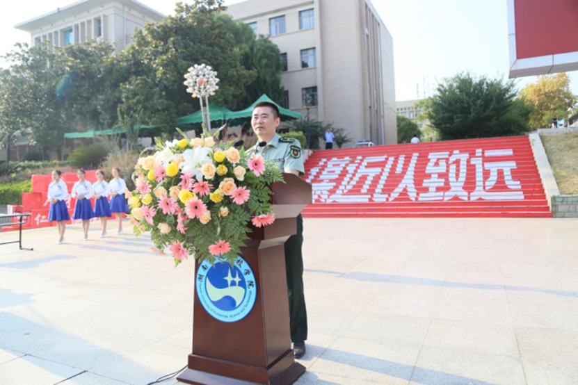 娄底军分区战备建设处少校参谋梁豪感谢学校多年来对征兵工作的支持,他鼓励大家扎实开展军训,号召大家建功立业赴军营,为新时代国防做出贡献。