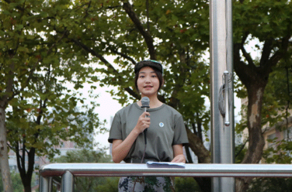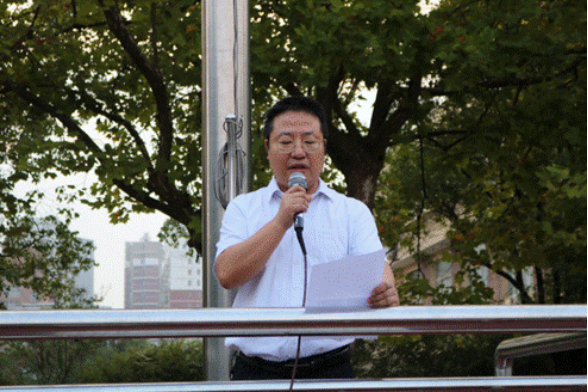 (学生代表金苗做国旗下的演讲)