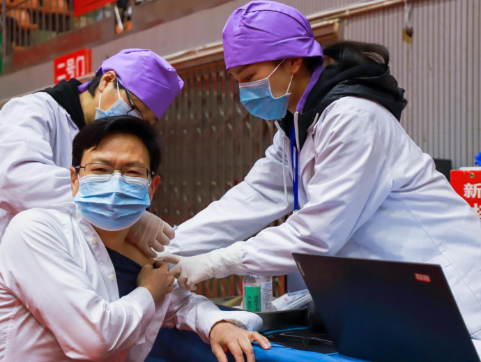 (图为刘铁铭校长带头接种疫苗)