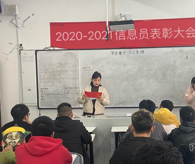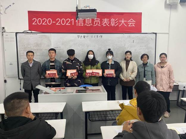 最后,童玲宣读了2020-2021学年优秀学生教学信息员名单。陆序彦、童玲为优秀学生教学信息员颁发了荣誉证书和奖品,并同大家合影留念。