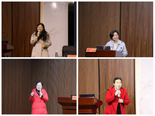 (图为四名教研员讲述报告)