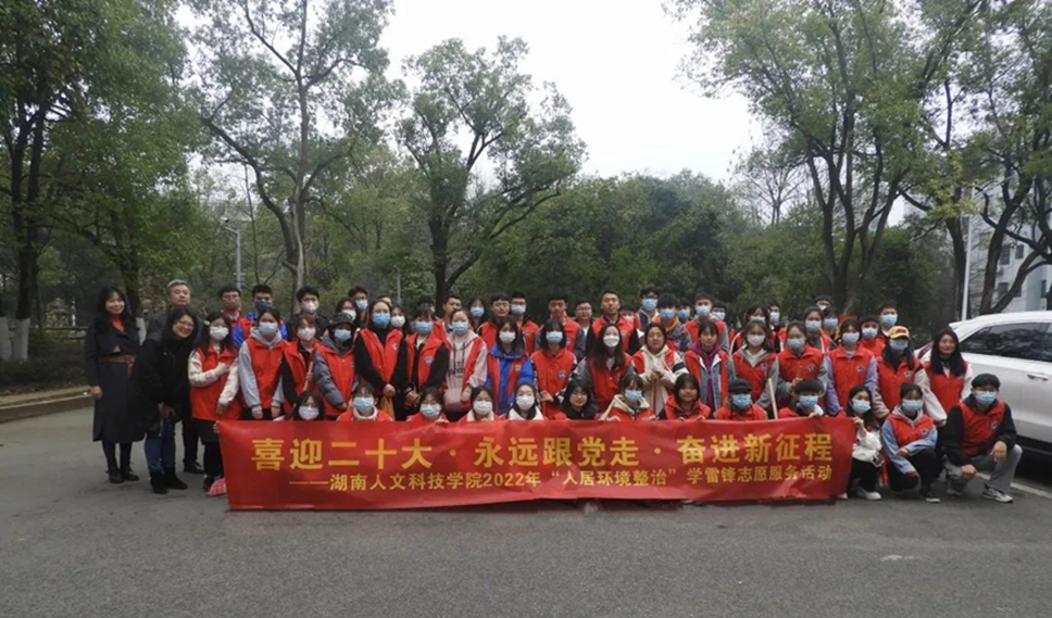 为落实“喜迎二十大 永远跟党走 奋进新征程”湖南百万青少年学雷锋志愿服务行动,提升大学生奉献祖国、奉献家乡、奉献地方的志愿服务精神,3月4日至10日,今年会联合娄底市组织开展了2022年学雷锋活动月系列活动之“人居环境整治”专项活动。在为期一周的活动中,学校近两百余名志愿者分别在学校五义苑,娄底各大街道、公交车站和有关社区、乡村开展相关志愿服务活动,为学校、为娄底营造了干净整洁的人居环境,为居住环境焕发新光彩贡献青春力量。
