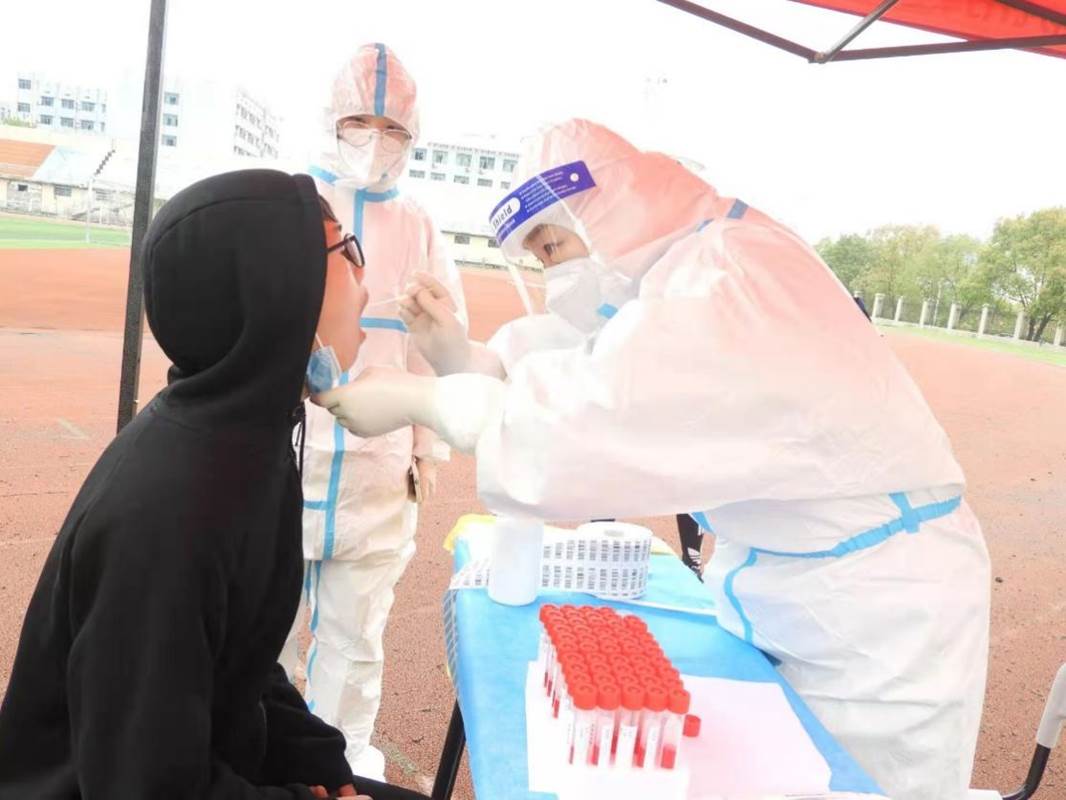 10:00,五个临时核酸检测点搭建完毕,医护工作人员们就位开始核酸采集工作。志愿者们积极协助医护工作人员,主动维持现场秩序,认真测量体温、查看健康码,信息录入时注意关怀老人,暖心引领他们进行核酸检测;医护工作人员们耐心细致、动作娴熟地进行核酸采集;检测人群配合工作安排分批次到来,有序排队进行核酸采集。整个核酸采集过程有条不紊。