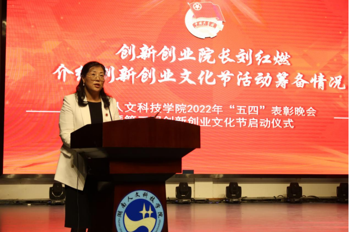 (创新创业学院院长刘红燃介绍文化节筹备情况)
