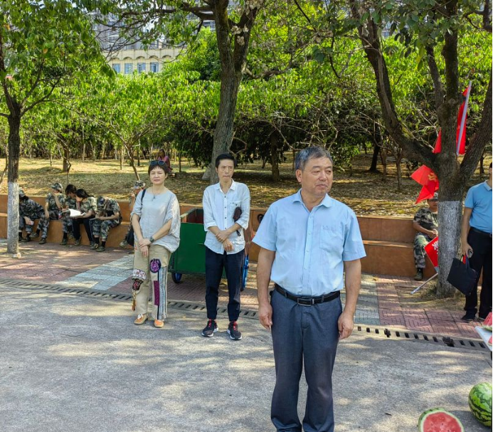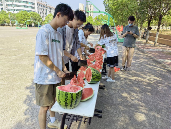 随后,领导老师们给新生和带队教官分发消暑解渴的西瓜,并亲切询问了学生军训的感受,跟带队教官详细了解了军训的进展。吃着可口的西瓜,同学们脸上洋溢着喜悦,感受到了学院的关怀与祝福。