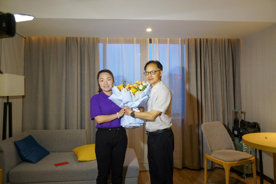 当日下午,学校党委副书记李军林率宣传部、组织部、团委、学工处、商学院负责人专程来到蓝雨晴休养的酒店看望慰问。李军林代表学校党委送上鲜花及慰问金,与蓝雨晴同学亲切交流。李军林表示,“要号召全校师生向蓝雨晴同学学习,她用行动诠释了当代青年大学生党员的责任与担当。她不是学校第一个捐献者,也不会是最后一个捐献者。希望更多同学加入到捐献造血干细胞的行列中来,帮助更多身处绝境的患者,为他们点燃生命的希望。”