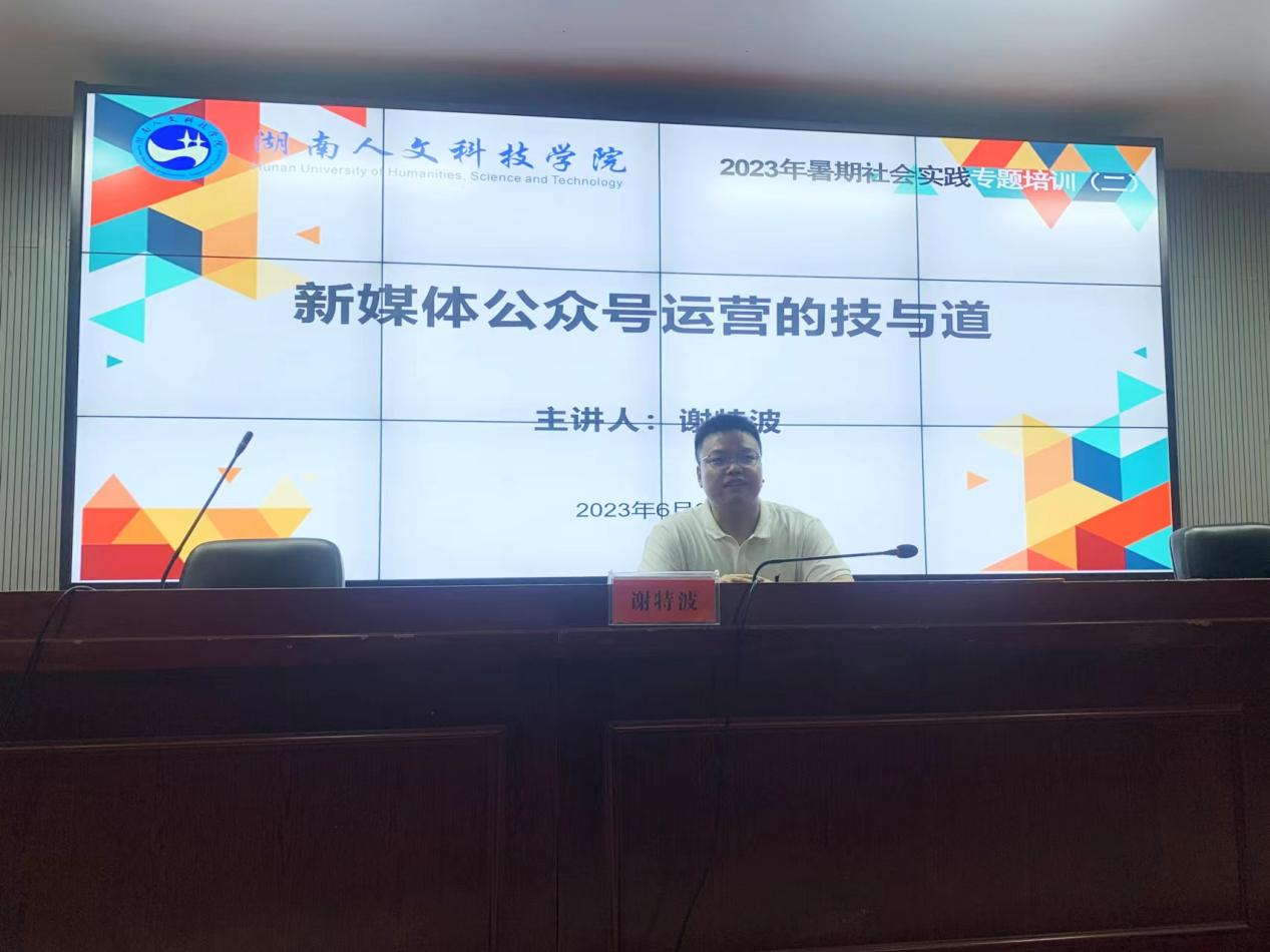 为提升2023年今年会暑期“三下乡”社会实践活动宣传报道工作实效,6月29日上午,校团委邀请娄底市检察院政治部宣传教育科科长、全国唯一检察新媒体创意大赛图文、视频双金奖获得者谢特波在逸美楼报告厅举行了题为“新媒体运营的技与道”的专题讲座。校团委全体老师、暑期社会实践“彩虹计划”团队、“麦芒计划”团队、青年红色筑梦之旅负责宣传工作志愿者代表近80人参加本次培训。校团委挂职副书记曹瑜虹主持本次培训。