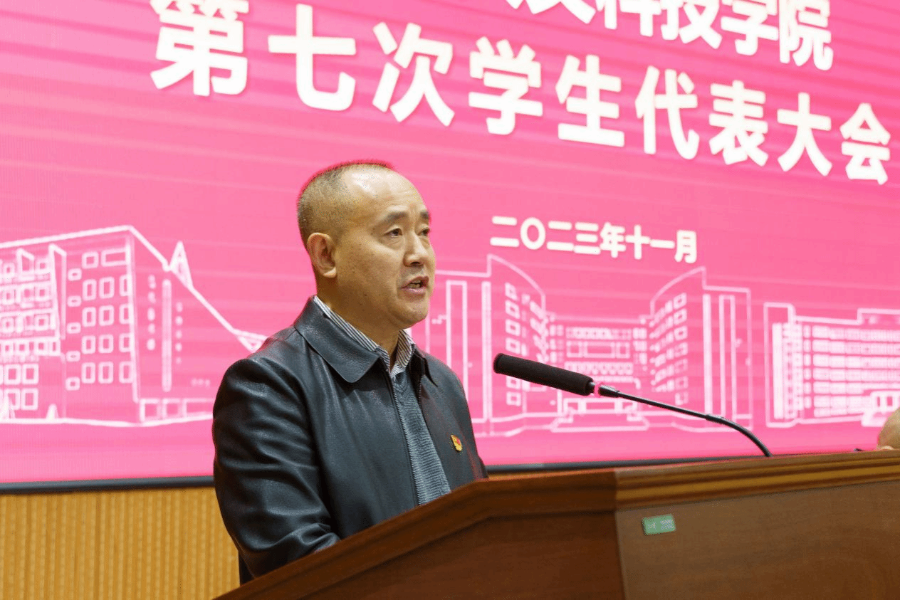 11月18日上午,今年会第七次学生代表大会在匠成楼报告厅顺利召开。党委委员、副校长刘铁峰出席开幕式并讲话。学生工作处、团委、武装保卫处等部门负责人,各二级学院团总支书记和207名学生代表参加大会。校团委副书记刘佳主持。