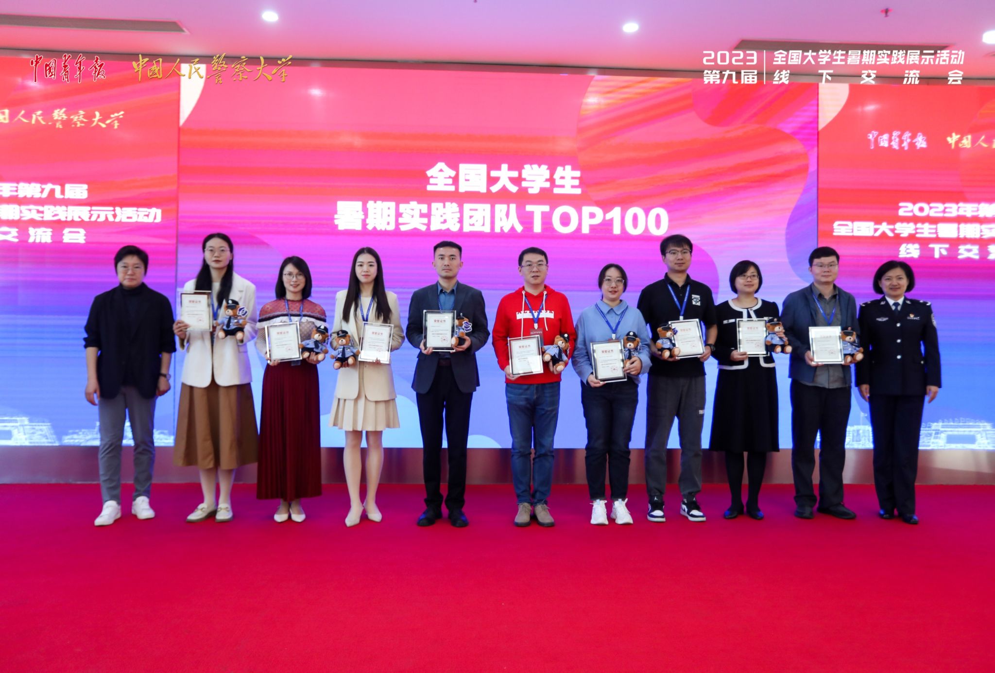 11月21日至22日,团中央、中国青年报社主办的第九届全国大学生暑期实践展示活动线下交流会及颁奖仪式于中国人民警察大学(广州)举办。今年会“彩虹计划”服务队、“青春向党 红色筑梦”调研团两支团队荣获“全国大学生百强暑期实践团队”荣誉称号。为了深化实践成果,交流实践经验,今年会团委挂职副书记曹瑜虹、综合科科长李林奇、马克思主义学院团总支书记周浩博士及李婉溶老师、材料与环境工程学院团总支书记李璐玢及学生代表参加本次线下交流表彰会。