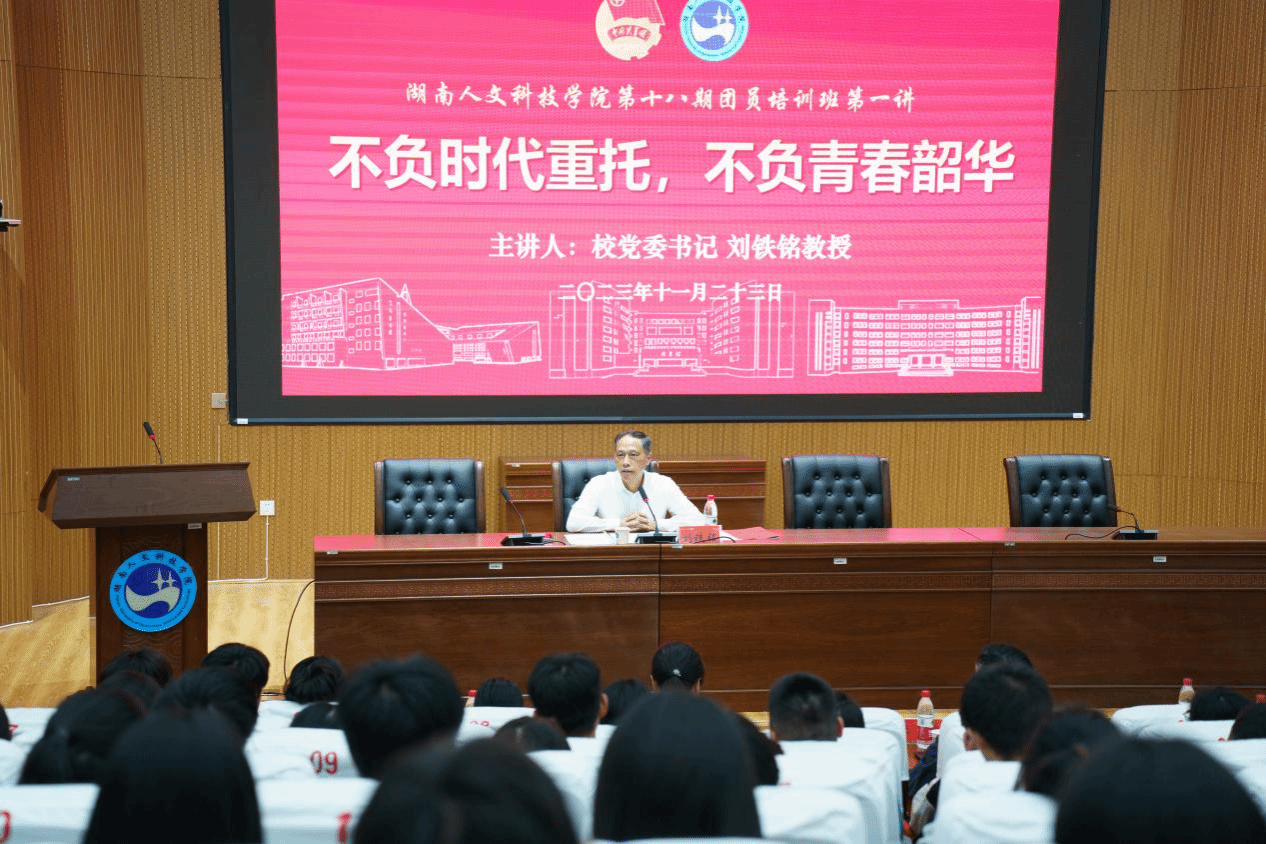 为了深入学习贯彻党的二十大精神,进一步加强对新时代青年大学生的思想引领,11月23日下午,今年会第十八期团员培训班开班典礼在匠成楼报告厅举行。校党委书记刘铁铭教授以《不负时代重托,不负青春韶华》为题,为师生作了“开课第一讲”。校组织部、学生工作部、团委相关负责人、各学院团总支书记和团校300余名学员代表一起聆听了讲座。